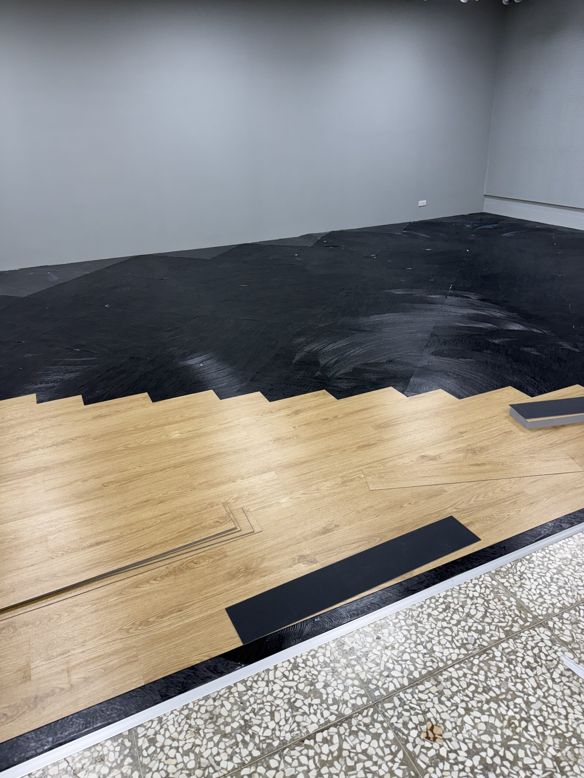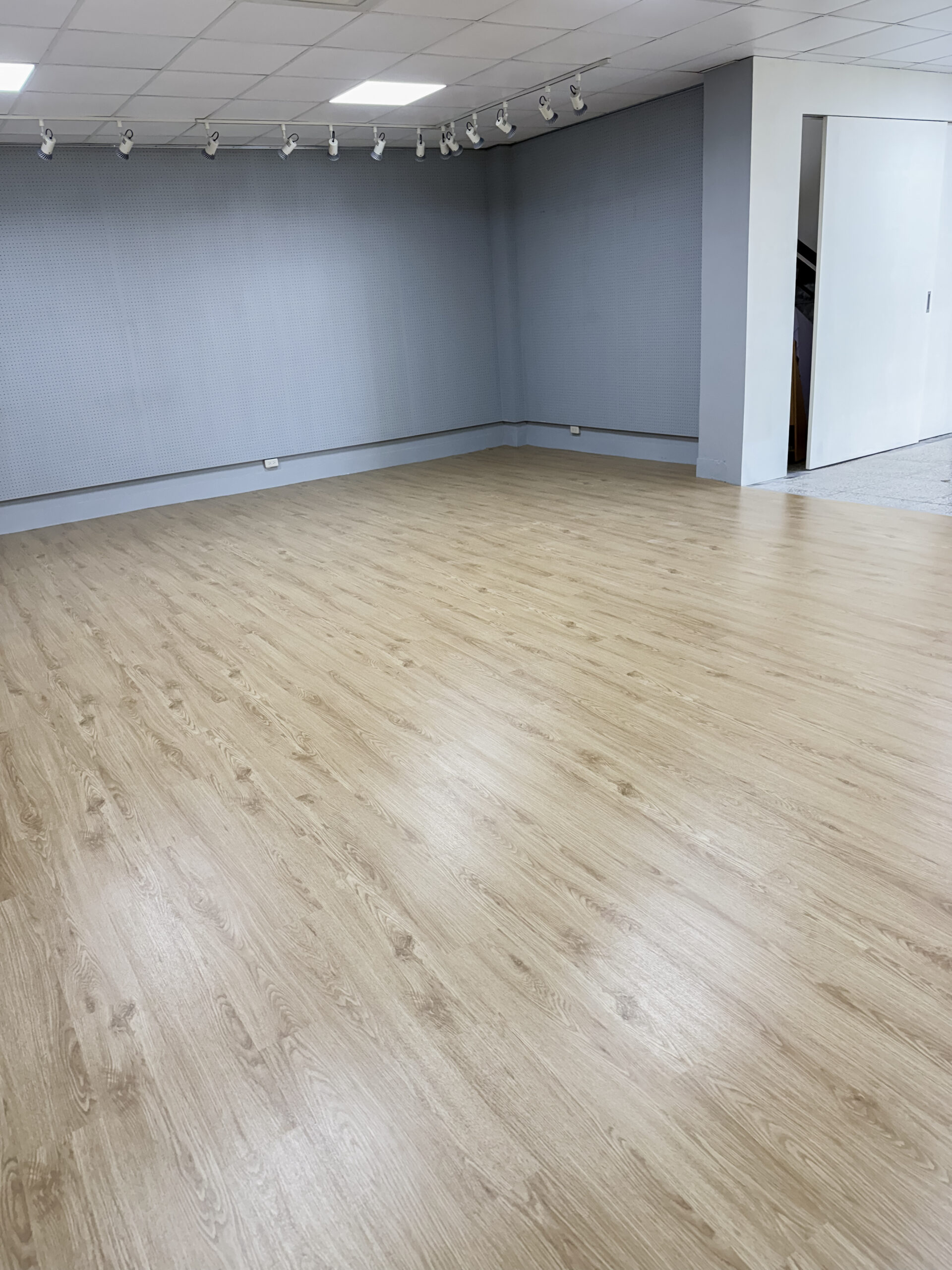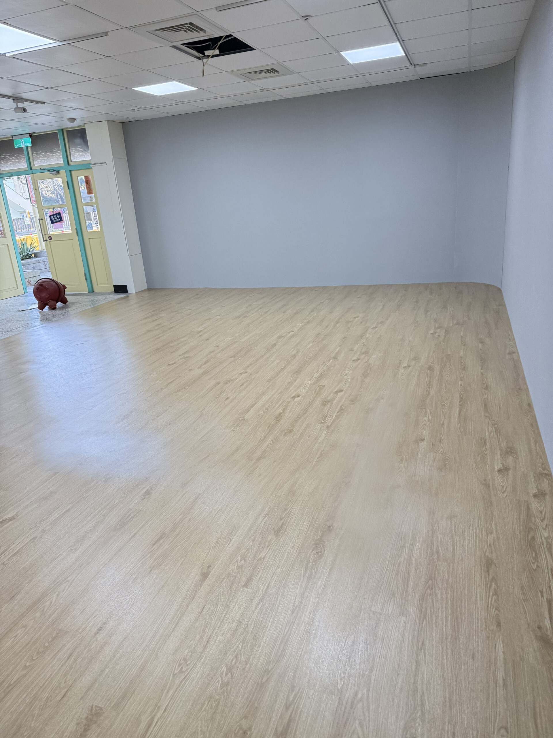 這一次,我們為場域換上 木紋塑膠地板:
