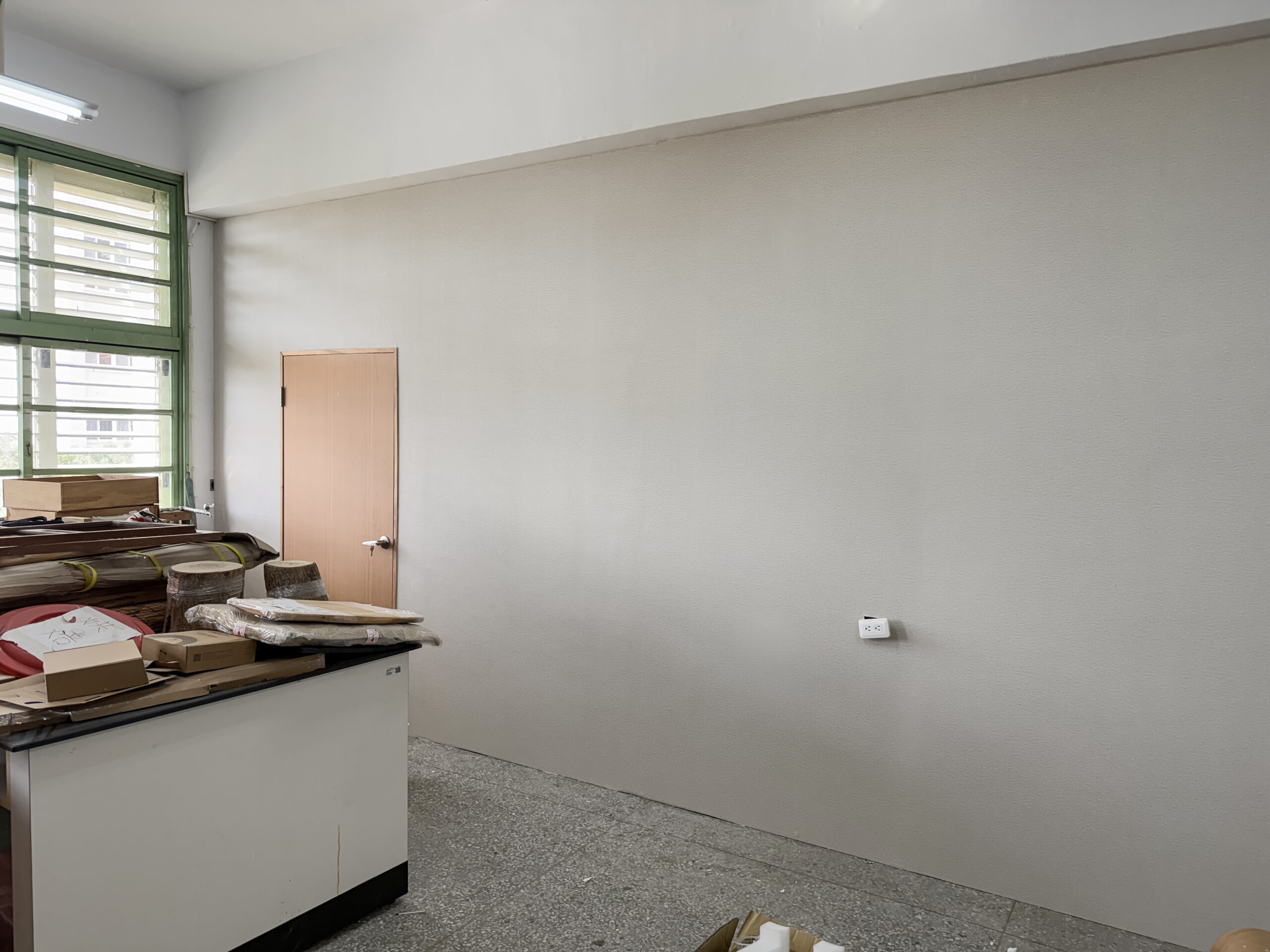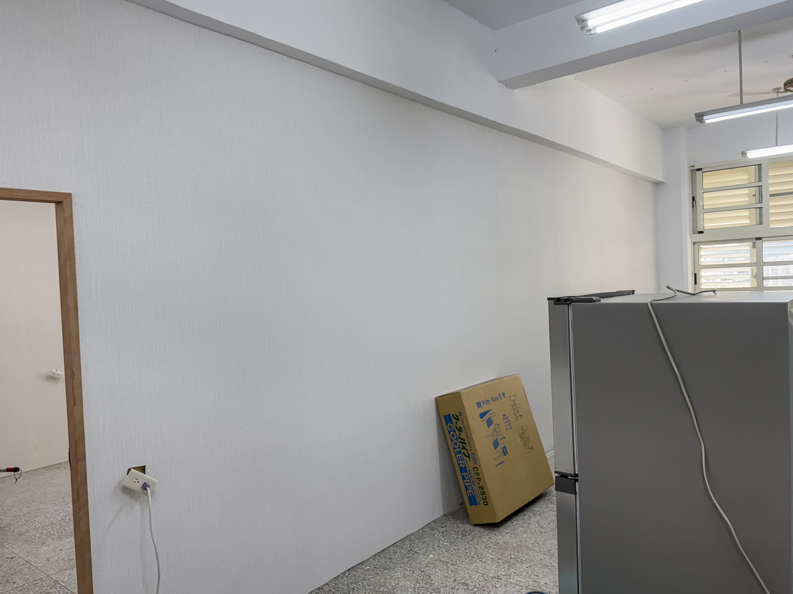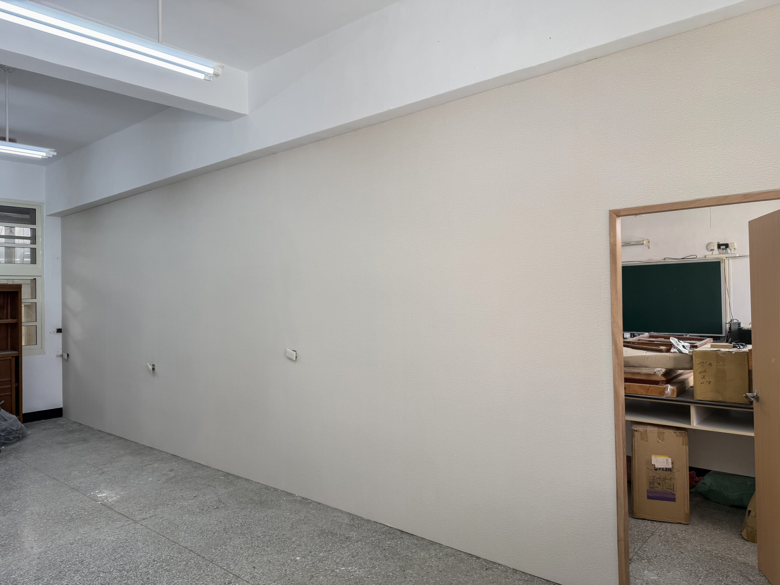壁紙施工案場《雲林虎尾》沉穩柔和的灰調質感教室