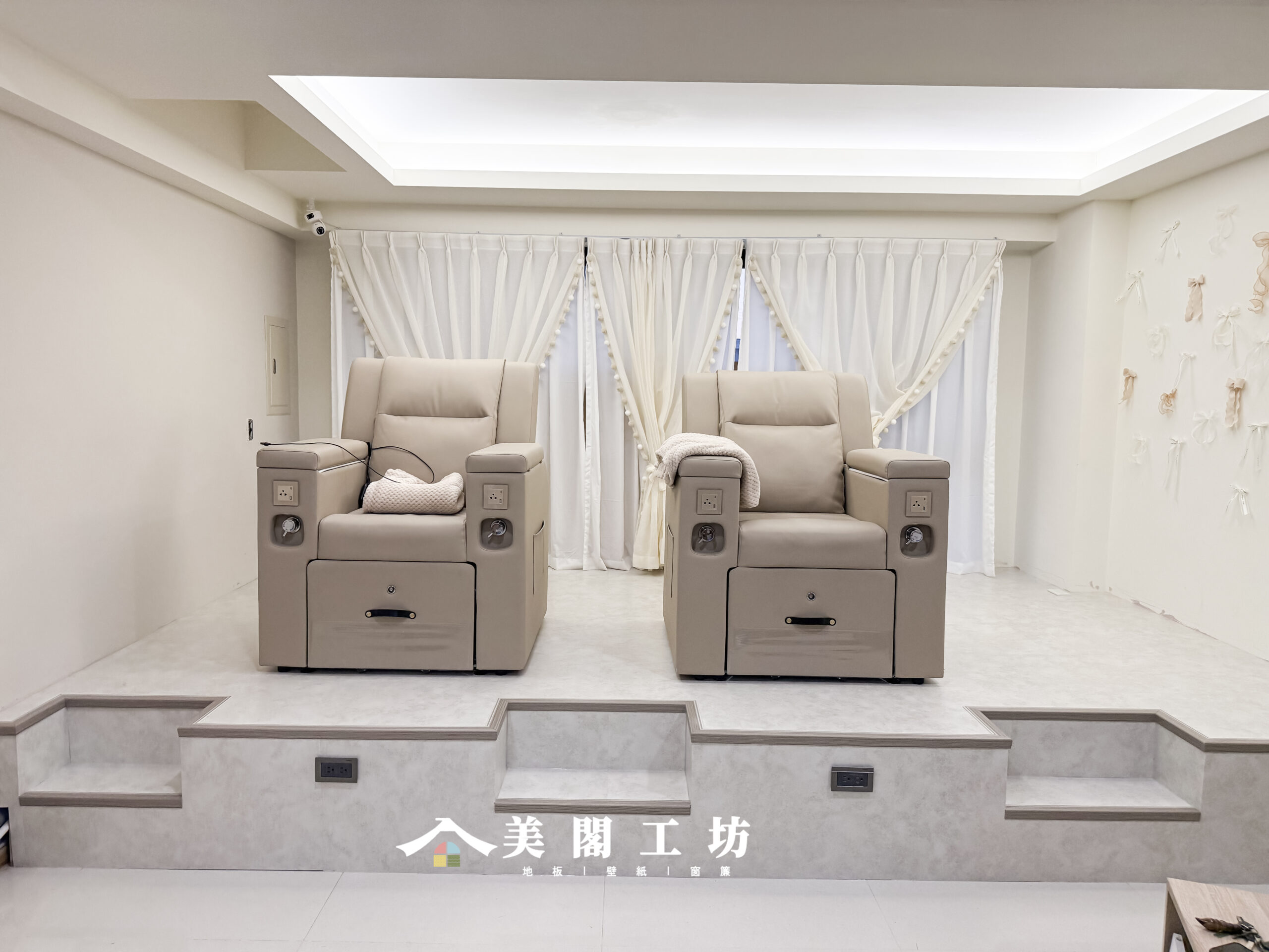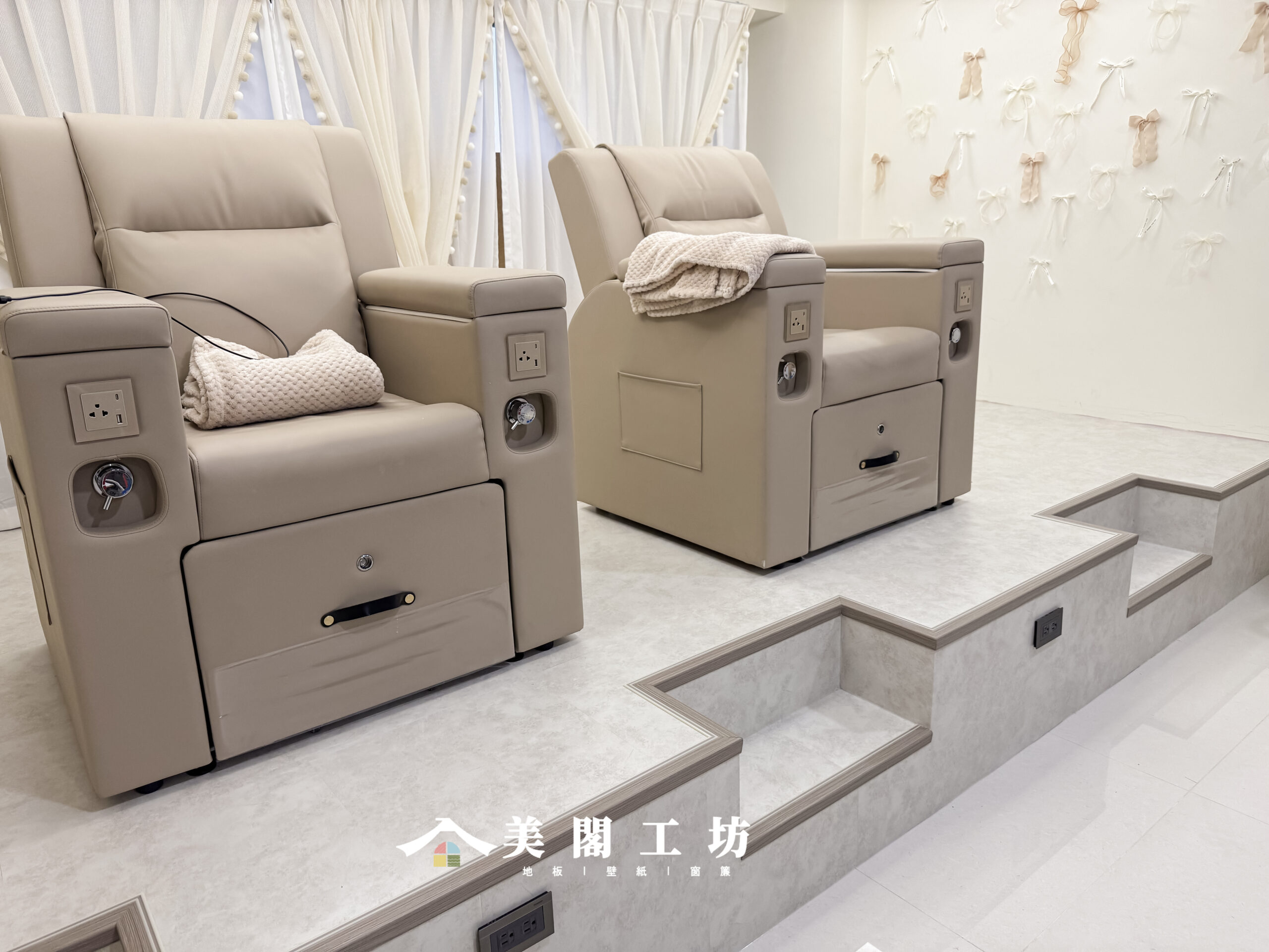 彰化員林美甲店地板施工|石紋塑膠地板推薦|奶油霧感·簡約柔美風格▸美閣工坊