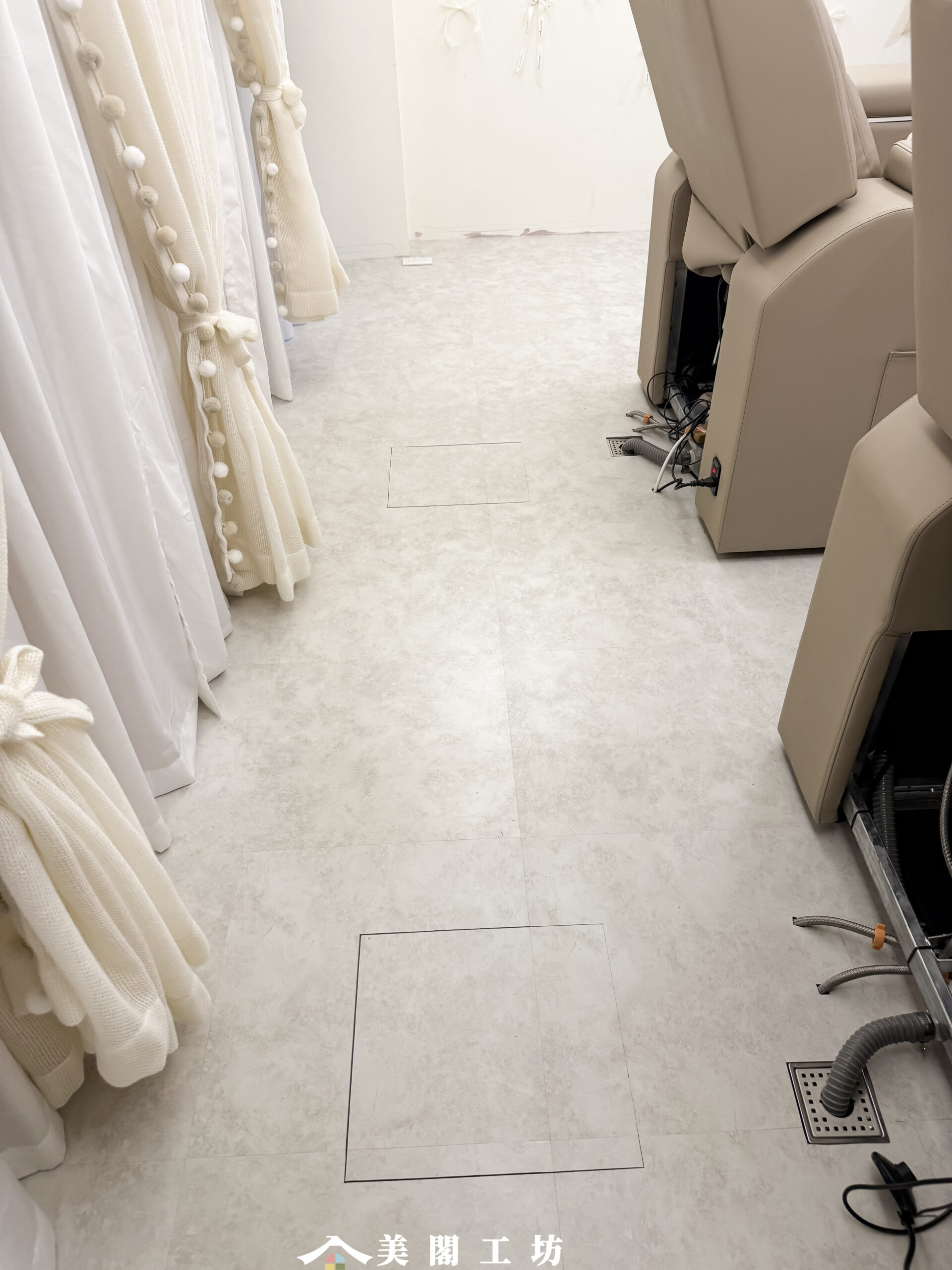 為美甲空間鋪設高質感石紋塑膠地板。