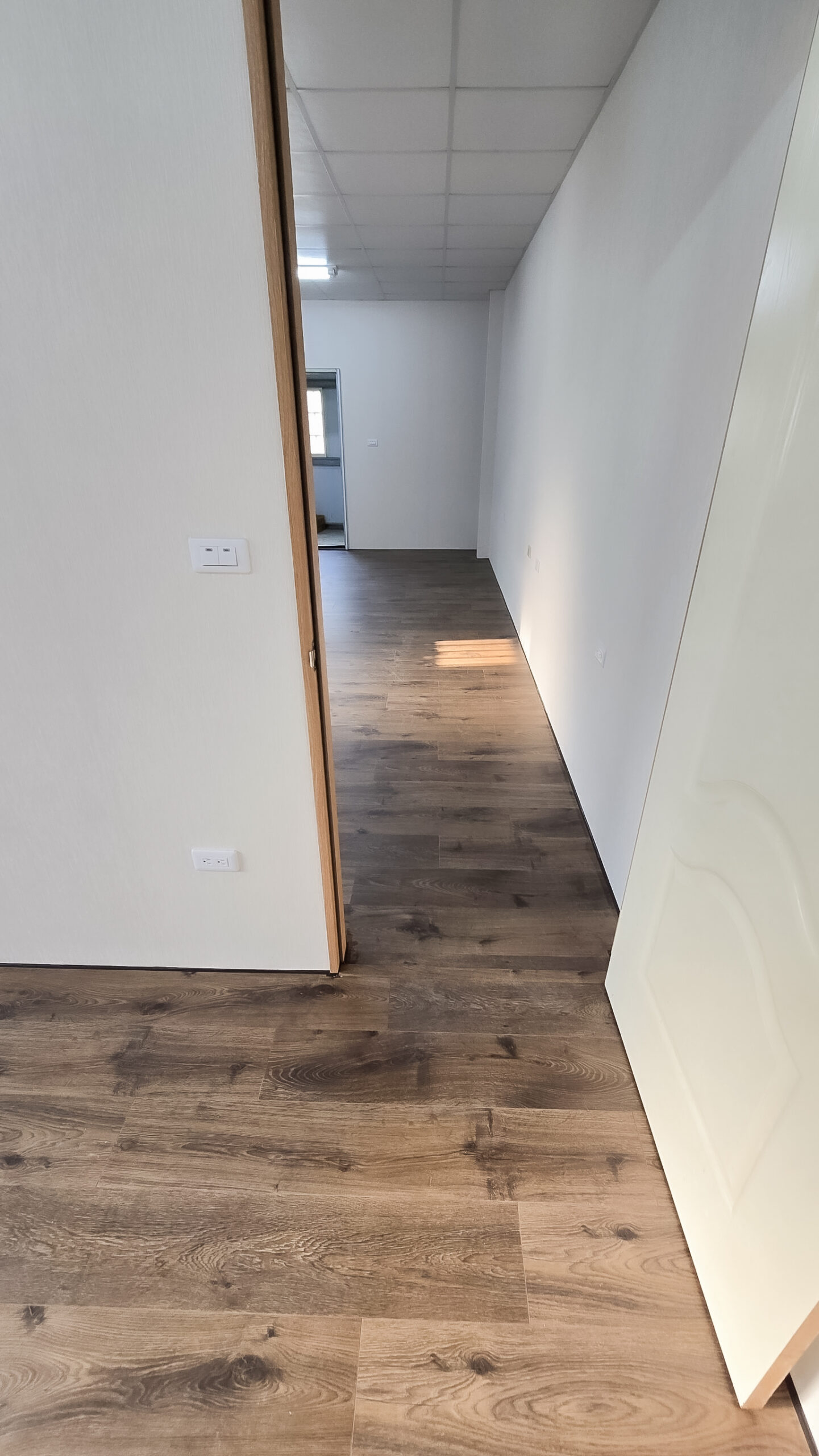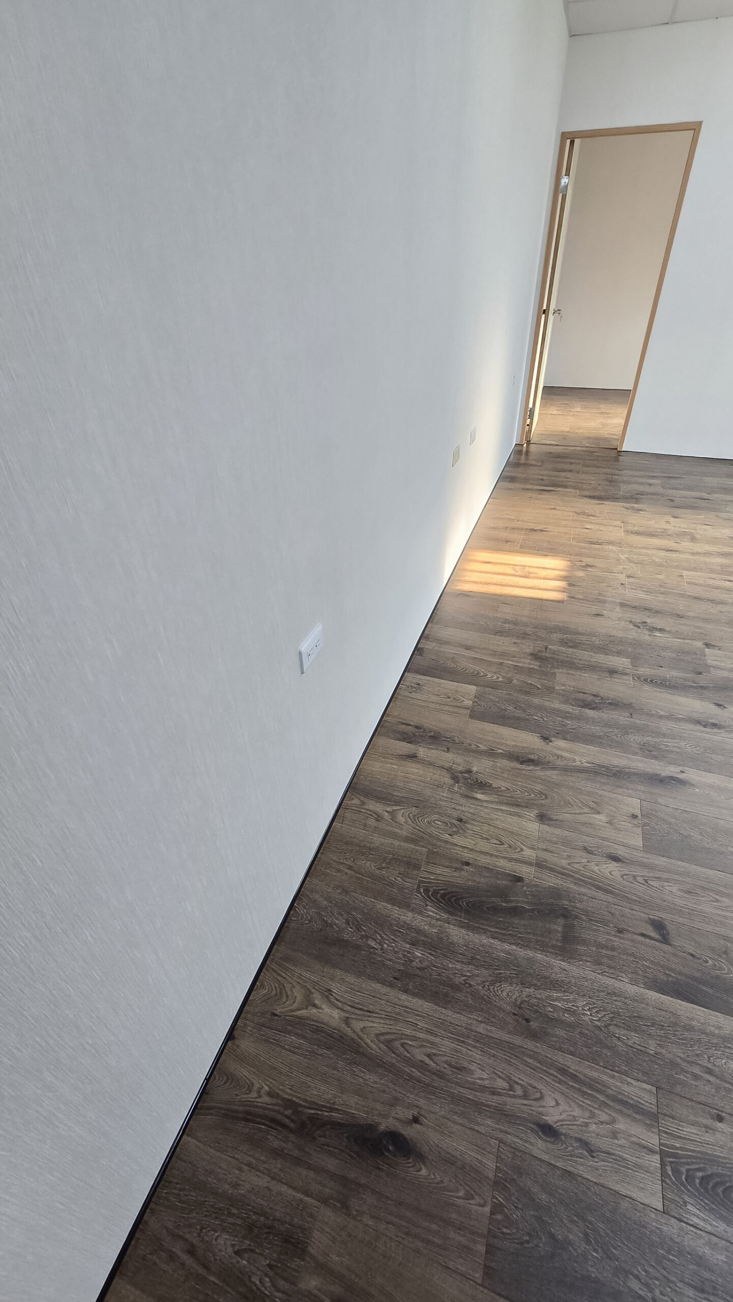 光線沿著牆面滑落,投射在地板上,