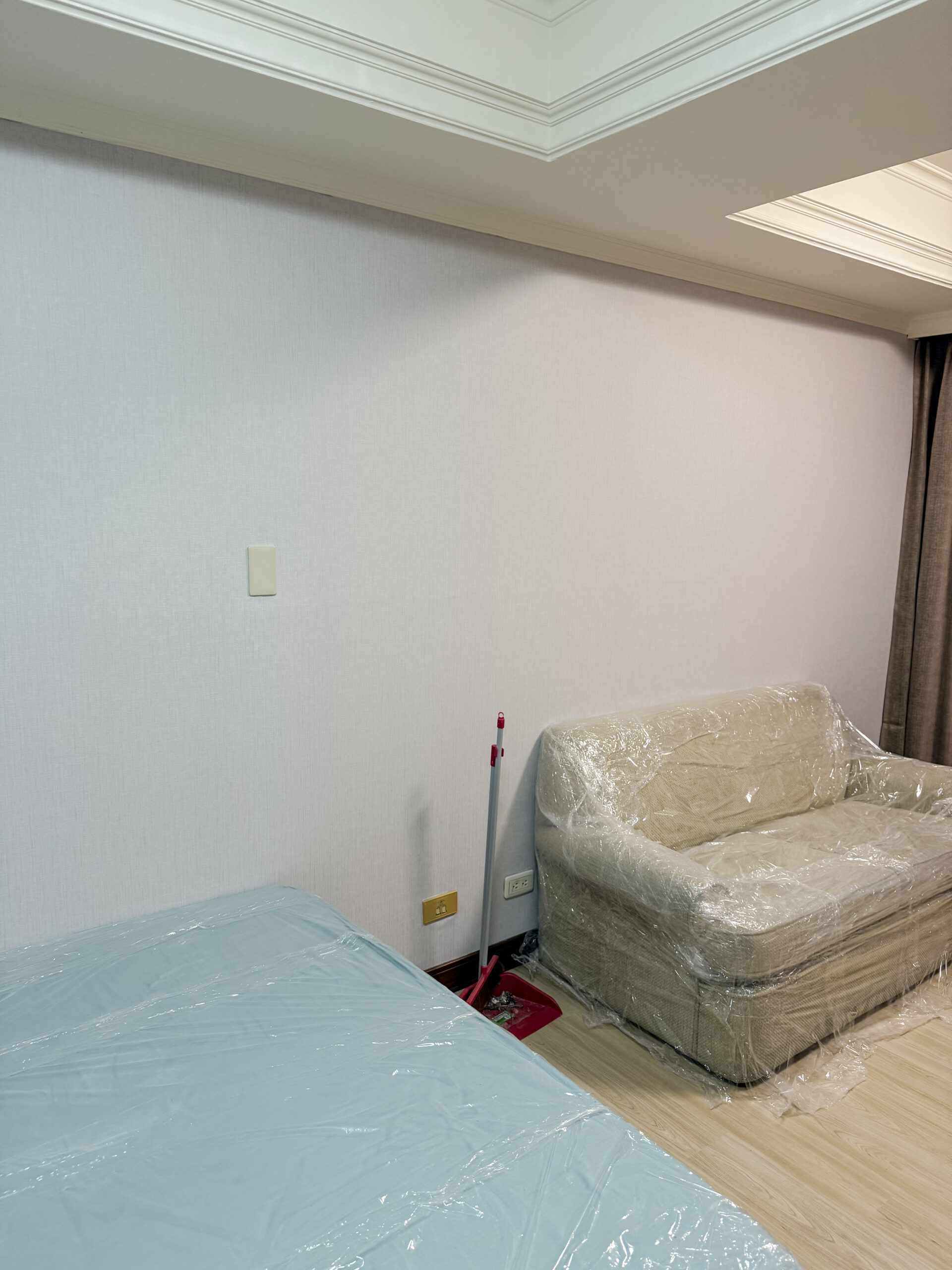 美閣工坊【壁紙‧窗簾‧塑膠地板施工】案場台中西區|奶茶灰現代宅